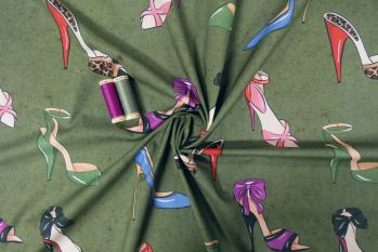 A Lovely Cotton Marlie-Care Lawn Digital Abstract Paintstroke Print in Tones Of Olive Lime, Purple, Black, Coral Orange and Bright Pink
