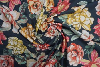 A Lovely Cotton Marlie-Care Lawn Digital Photographic Style Print Featuring Stitched Embroidery in Colourful Tones on a Cream Background